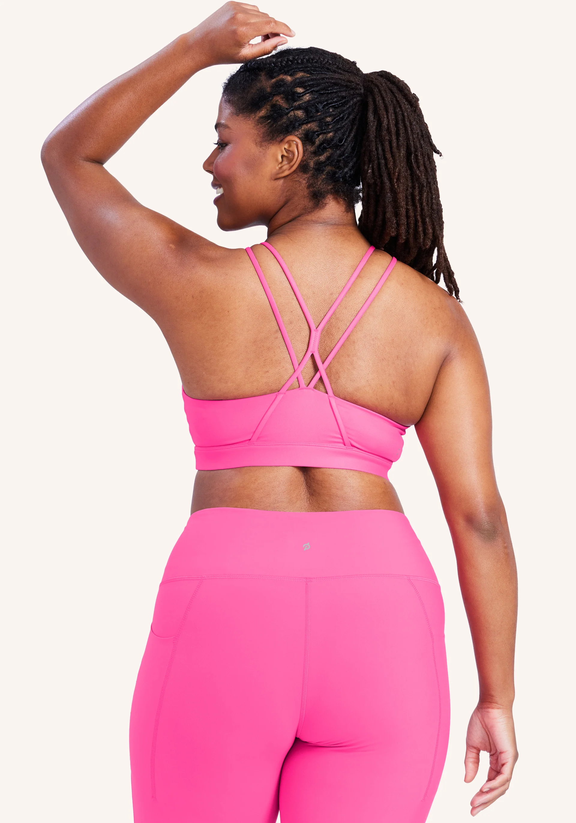 - Low-Medium support bra with high neck, back strappy detail and removable cup pads