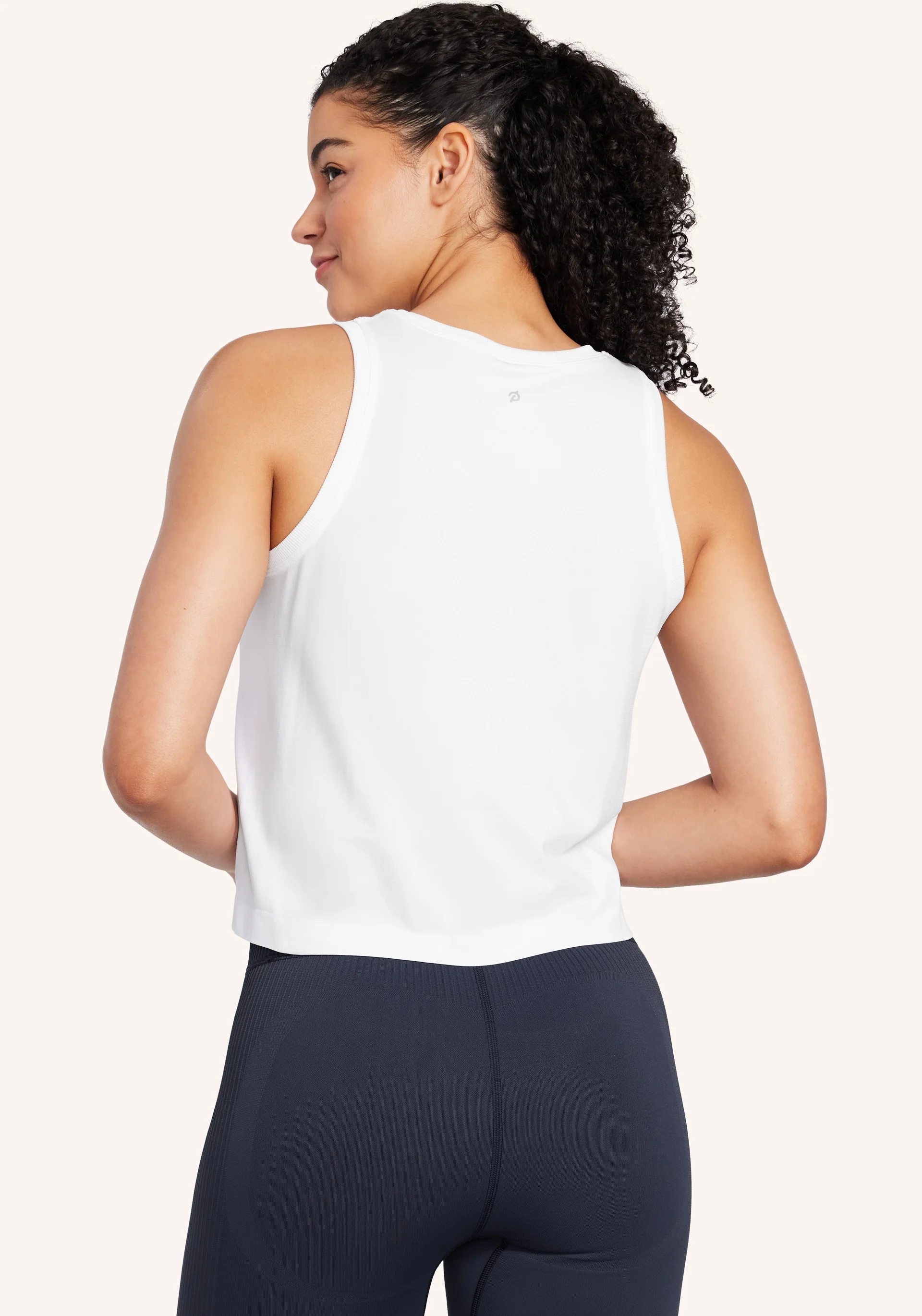 - Peloton logo at bottom left hem